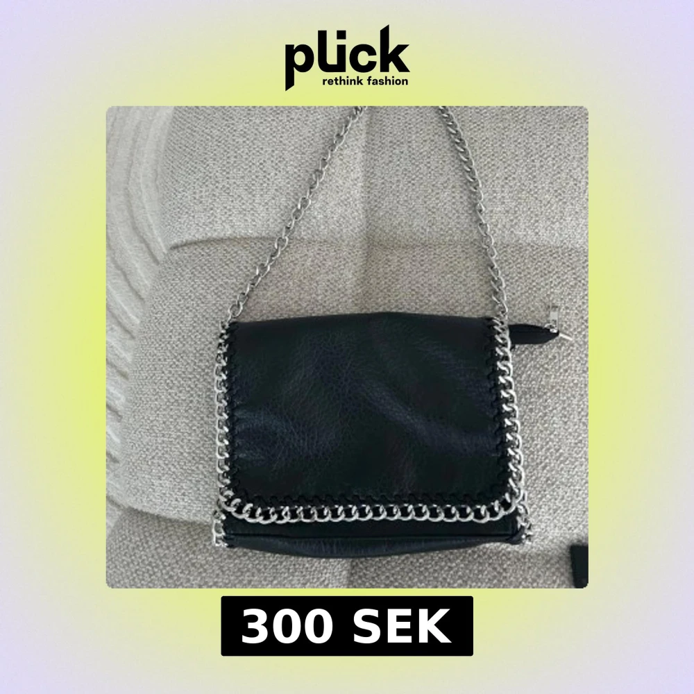 Snygg svart axelväska i skinnimitation med silverfärgad kedja som axelrem och runt kanterna. Väskan har ett stilrent och modernt uttryck, perfekt att slänga över axeln för en cool look. Stängs med dragkedja upptill. bara att fråga om ni vill ha mer bilder eller undrar nått🥰🥰