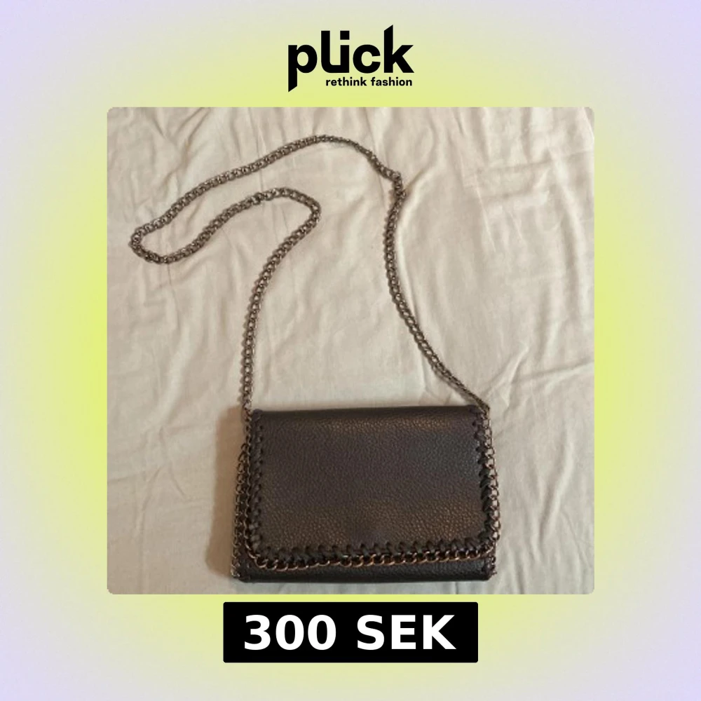 Snygg svart axelväska i skinn med grov kedja som axelrem och runt kanten. Väskan har ett lock med magnetknäppning och insida med dragkedjefack. Perfekt storlek för det viktigaste och cool design med kedjor som ger en edgy vibe.