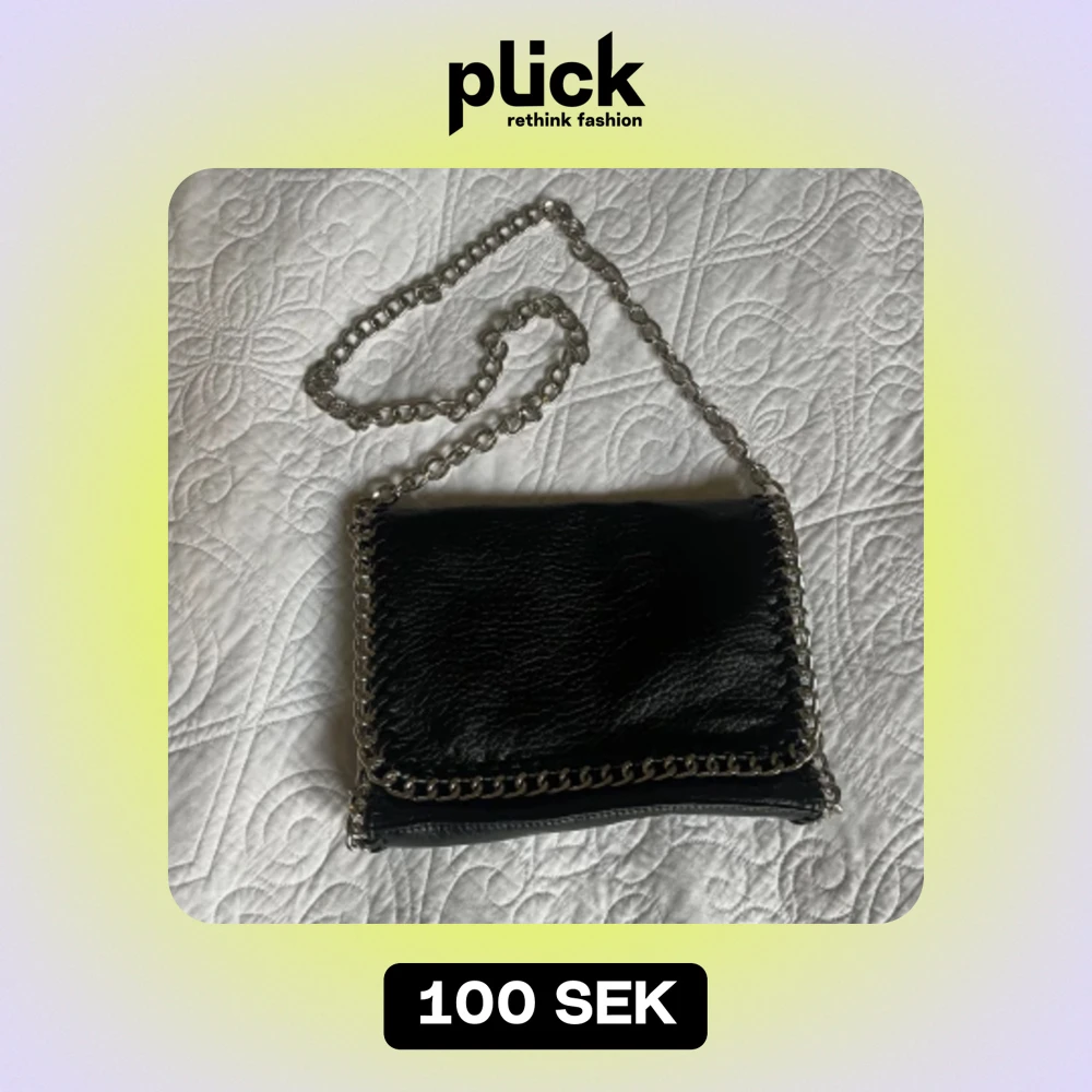 Säljer en svart väska från Tiamo i konstskinn med coola kedjedetaljer. Endast använd ett fåtal gånger. Väskan har ett fack med dragkedja på baksidan och flera mindre fack/innerfickor. Mått ca: B=28 cm, H=20 cm, D=5,5 cm. Axelkedjans längd ca 109 cm
