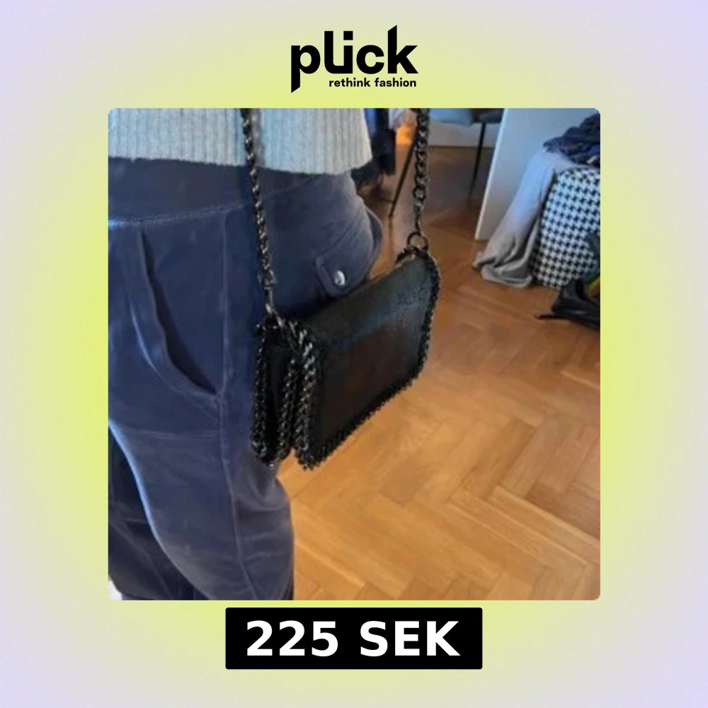 Svart mini axelväska! Väskan har silver kedja, det finns en ”ficka” som är liten inuti där man t.e.x kan lägga sitt kort i eller så!