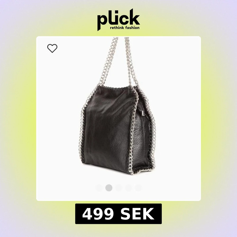 Cool svart axelväska i skinn med silverfärgade kedjor längs kanterna och som axelrem. Väskan har en mjuk och fyrkantig form.