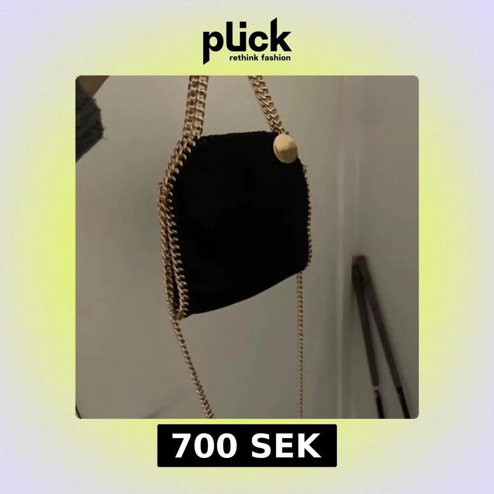Snygg svart axelväska med guldfärgade kedjedetaljer och en rund guldfärgad knapp. Perfekt för att ge en stilren touch till din outfit. Väskan har en elegant design och passar bra för olika tillfällen.finns en liten defekt (skriv för bild)