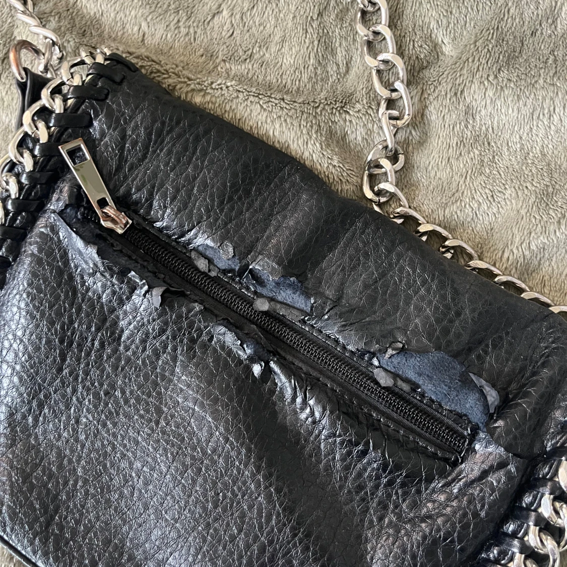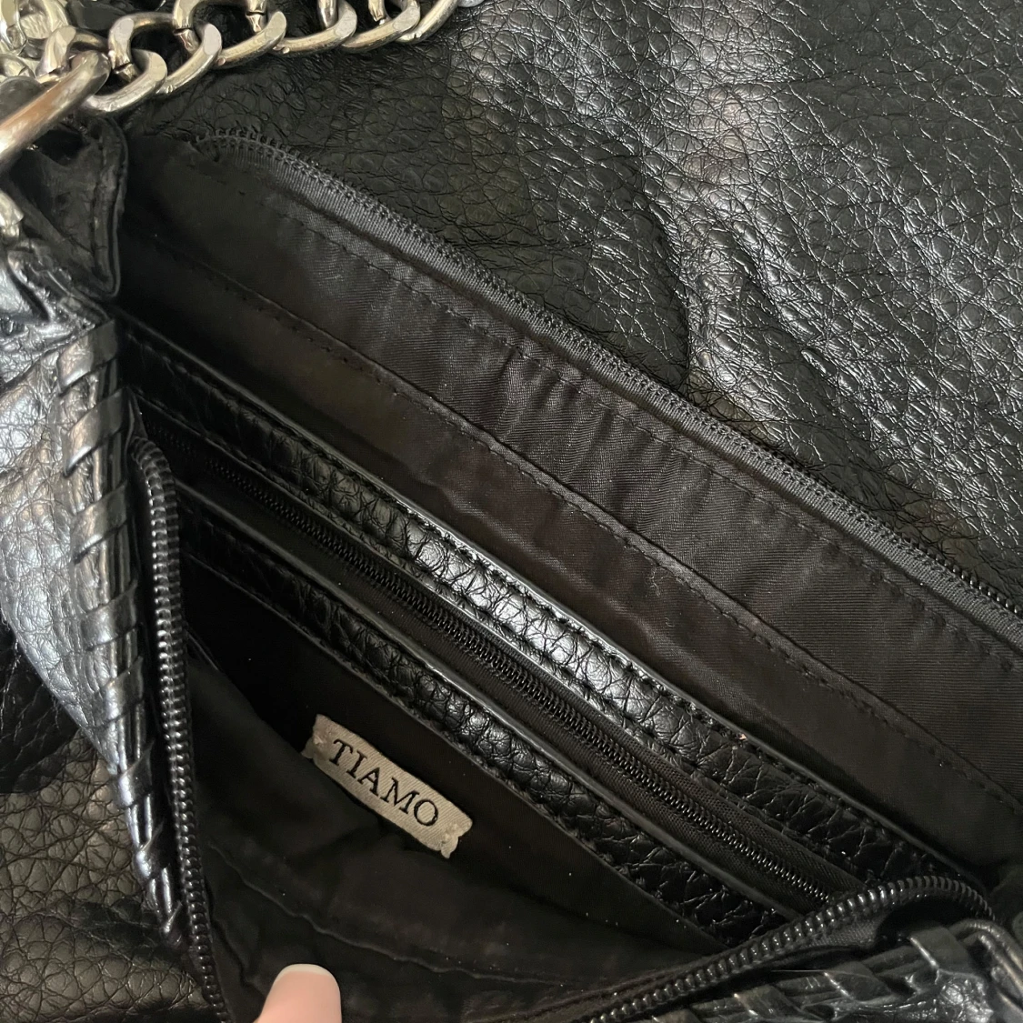 säljer en cool svart axelväska från Tiamo! väskan har dragkedja både på insidan och utsidan samt ett snyggt flätat mönster längs kanten. defekter på baksidan av väskan, därav priset. skriv vid fler frågor!💓