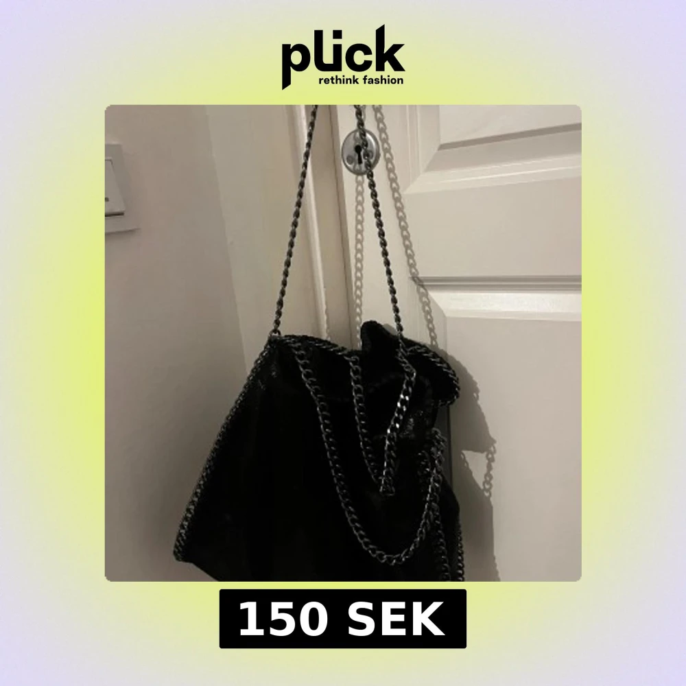 Snygg svart axelväska med glansig finish och grova kedjor som axelrem. Väskan har en mjuk, slouchy form och insida med dragkedjefack för småsaker. Perfekt för dig som gillar en edgy stil och vill ha plats för allt viktigt. Helt oanvänd