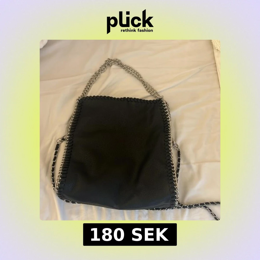 Säljer en svart axelväska i skinnimitation med grova silverfärgade kedjor som axelrem och längs kanterna. Väskan har en rymlig insida med innerfack och dragkedja. Perfekt för dig som gillar en edgy och stilren look.