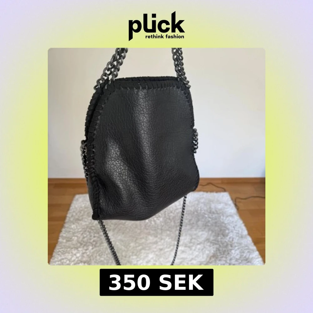 Cool svart axelväska i skinnimitation med grov kedjerem i metall och dekorativa sömmar längs kanterna. Väskan har en mjuk, något slouchy form och stängs med magnetknapp. Perfekt för dig som gillar en edgy och stilren look.