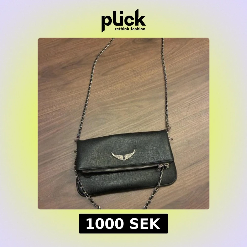 Snygg svart axelväska från Zadig & Voltaire i skinn med silverfärgad kedjerem och dragkedjedetaljer. Framsidan har en ikonisk vinglogga i metall. Perfekt storlek för det viktigaste. Väskan har lite sminkfläckar i botten annars i fint skick!