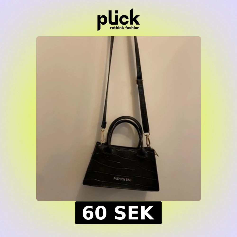 Snygg svart axelväska med krokodilmönster och texten 'FASHION BAG' på framsidan. Väskan har både handtag och en justerbar axelrem för flexibel användning. Perfekt för att ge en stilren touch till din outfit. Den är i ny skick knappt använd från Shein