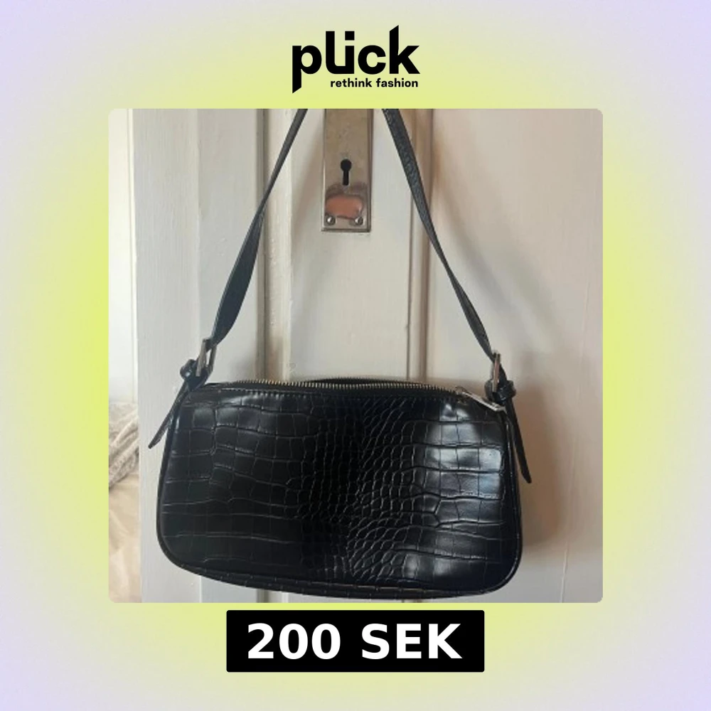 Snygg svart axelväska med krokodilmönster, dragkedja och detaljer i silver, från Gina Tricot. Perfekt för att ge en stilren touch till din outfit. Väskan har en justerbar axelrem och är rymlig nog för dina nödvändigheter.