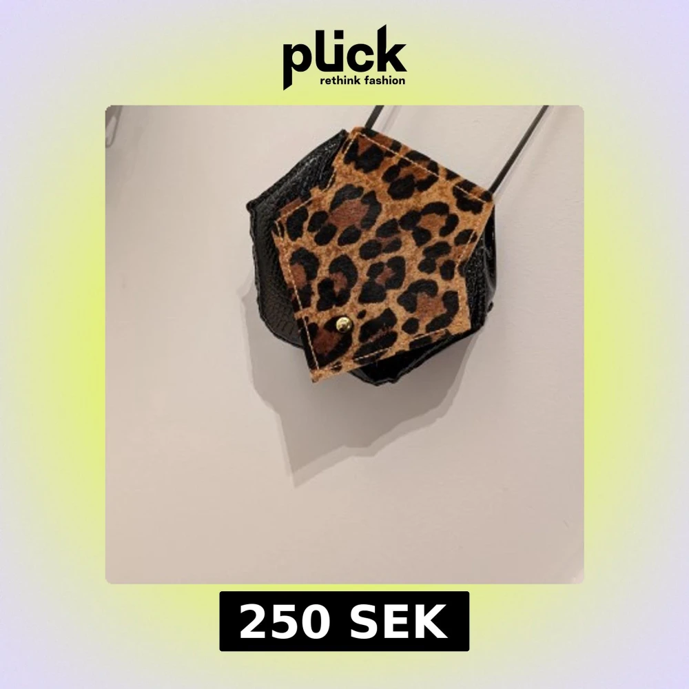Snygg svart axelväska i skinnimitation med krokodilmönster och leopardmönstrad ficka framtill. Väskan har en smal axelrem och stängs med en knapp. Två väskor i setet! Handsydda