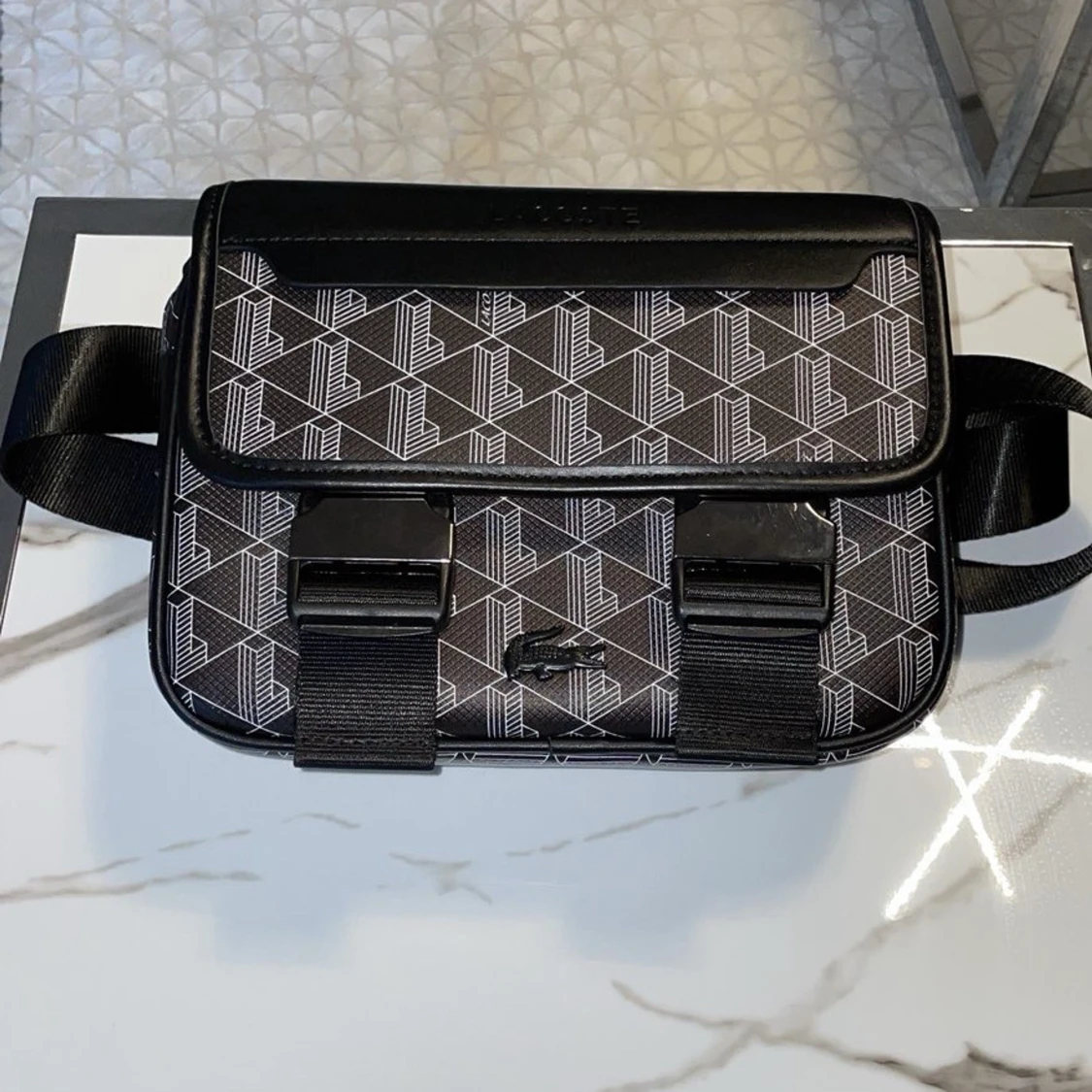 Svart axelväska med mönster