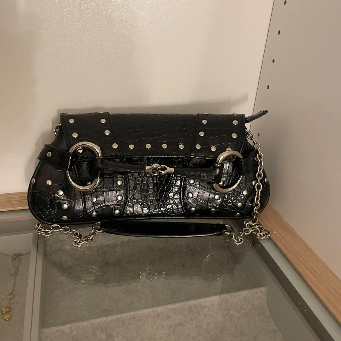 Säljer en jätte snygg svart väska med silver detaljer. Ny pris 300 kr. Priset kan diskuteras!💗
