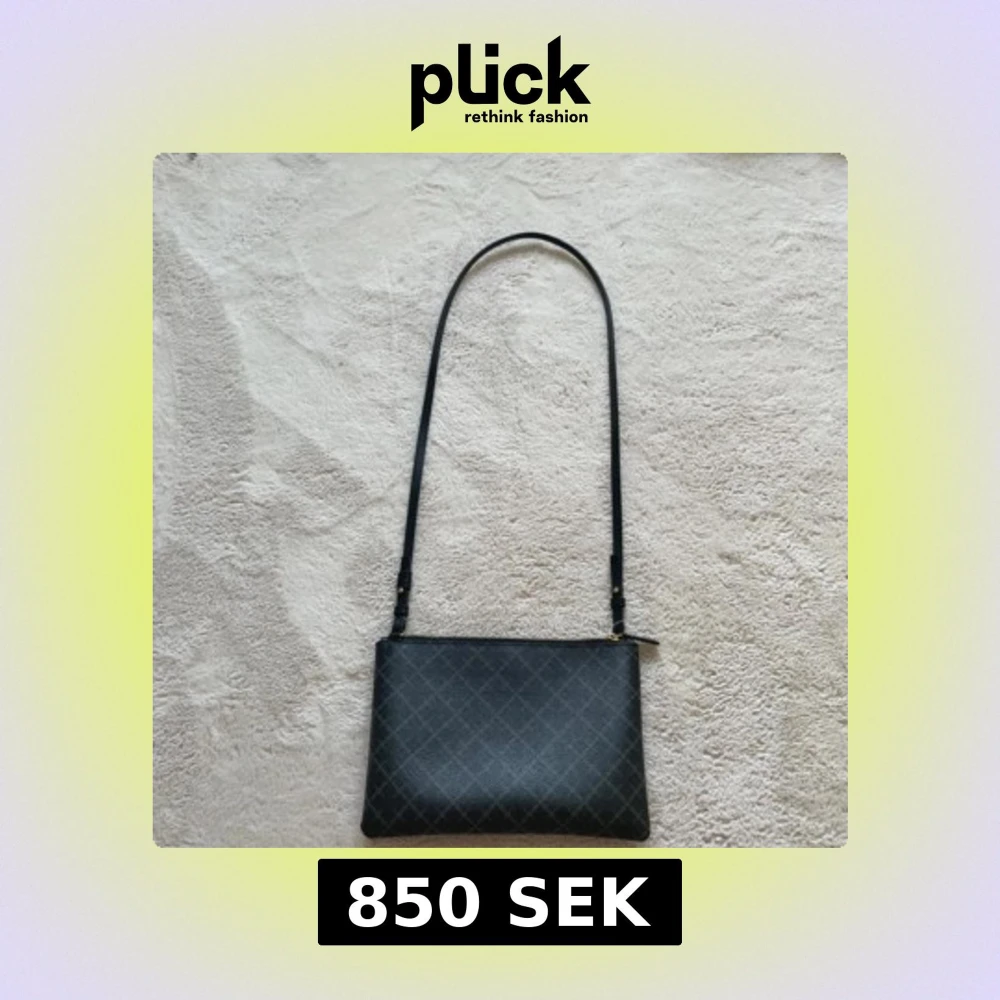 Stilren svart axelväska med långt justerbart axelband och diskret rutigt mönster. Väskan har guldfärgad dragkedja och är tillverkad i ett tåligt skinnliknande material. Perfekt storlek för det viktigaste och enkel att matcha till olika outfits.