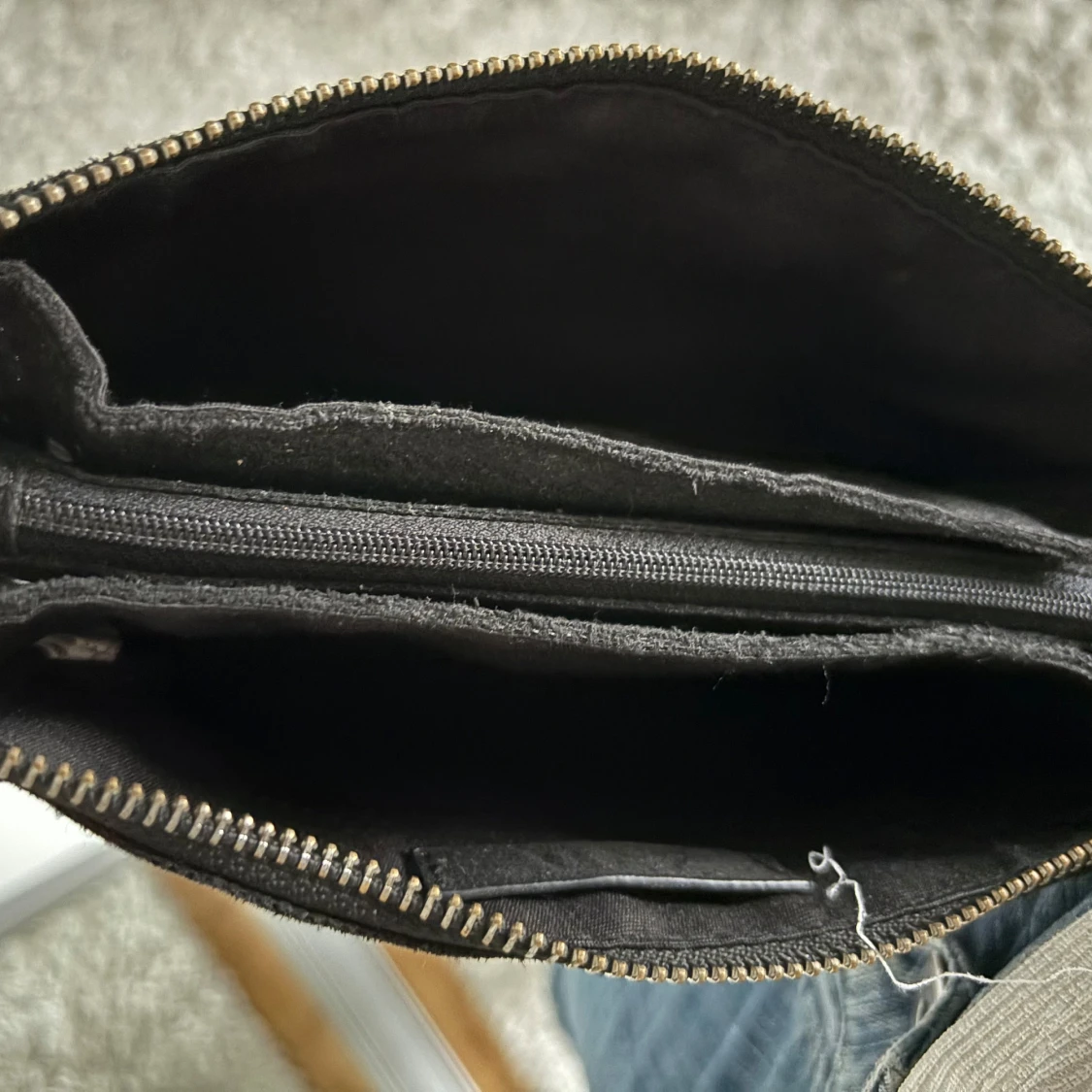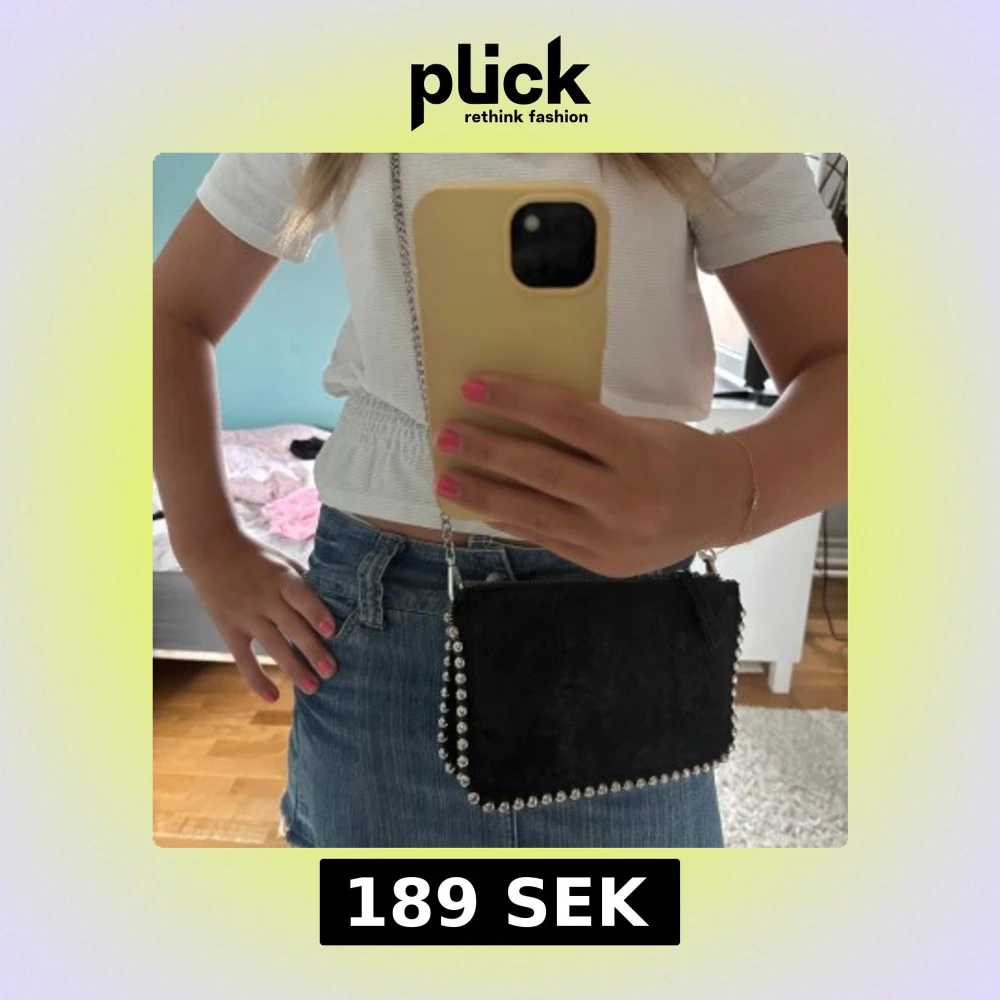 Snygg svart axelväska i mocka med silverfärgade nitar runt kanterna och kedjerem. Väskan har dragkedja upptill och flera fack inuti🥰💛 pris kan diskuteras och jag skickar så snabbt jag kan🥰🩷