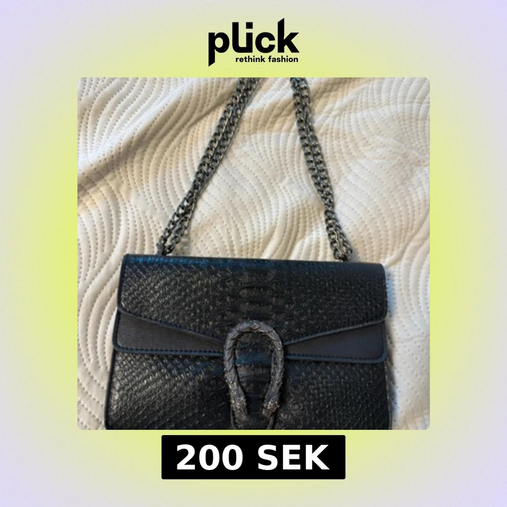 Snygg svart axelväska med struktur i ormskinnslook och cool silverfärgad kedja. Väskan har ett unikt spänne framtill med ormdetaljer som ger en edgy vibe. Perfekt storlek för det viktigaste och passar till många outfits.