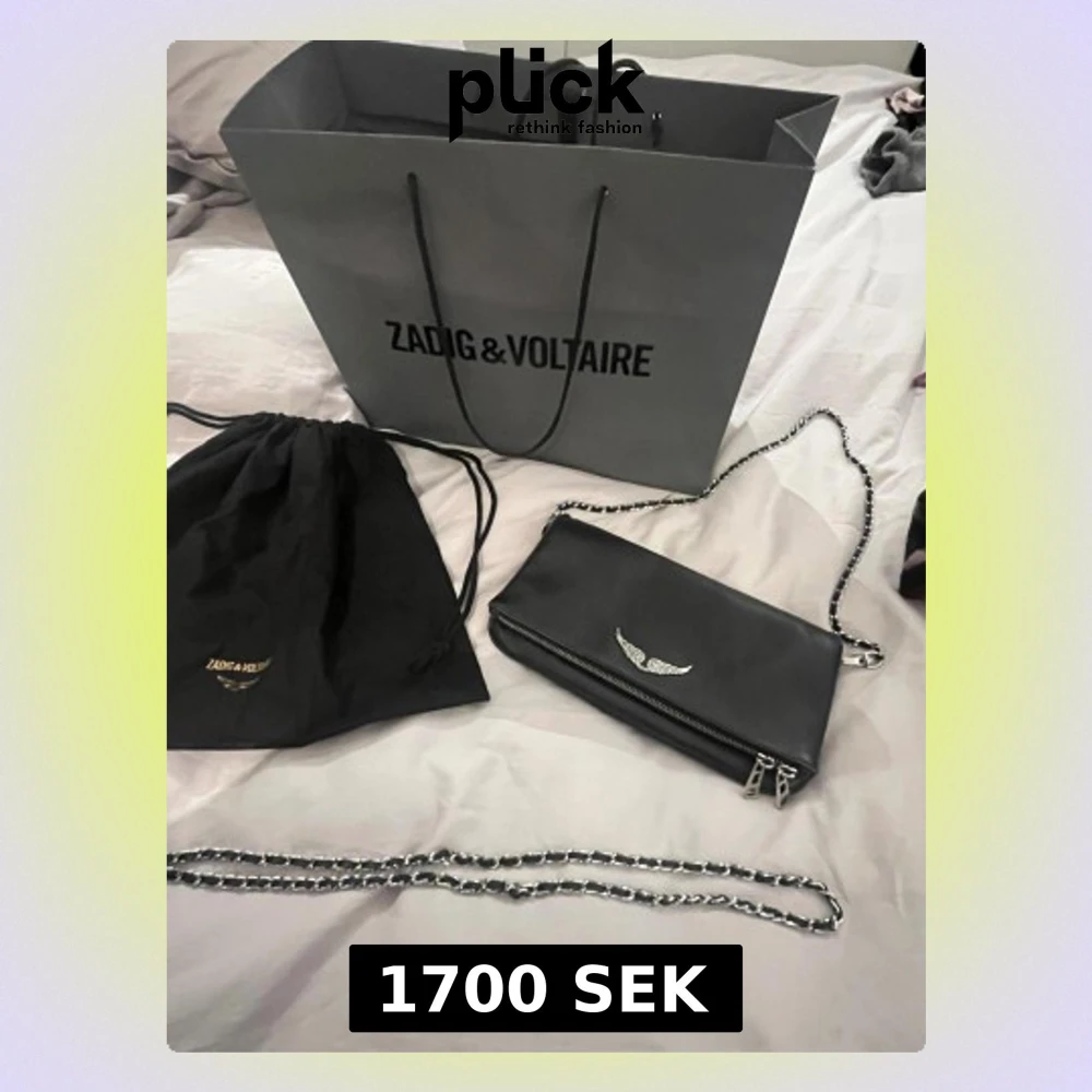 Snygg svart axelväska från Zadig & Voltaire i äkta skinn med silverfärgad kedjerem, finns en längre kedja till väskan, se bild! Dustbag tillkommer
