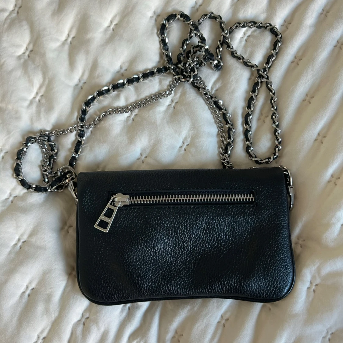 Snygg svart axelväska från Zadig & Voltaire i äkta skinn med silverfärgade metalldetaljer och kedjerem. Väskan är i mycket bra skick.