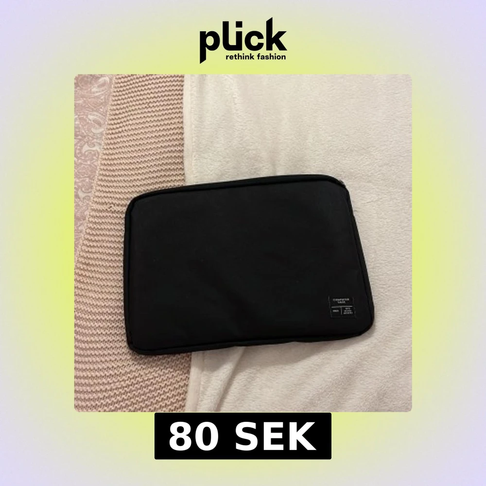 Minimalistisk svart datorväska, perfekt för att skydda din laptop. Väskan har en stilren rektangulär form, mjuk insida och dragkedja längs kanten. Märkt med 'Computer Case No.11' på framsidan. Enkel och clean design som funkar till plugget eller jobbet.