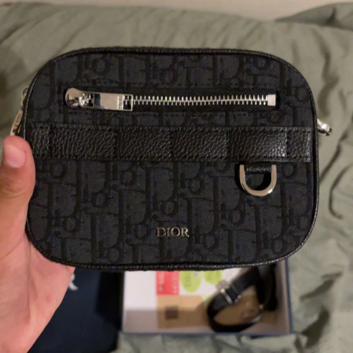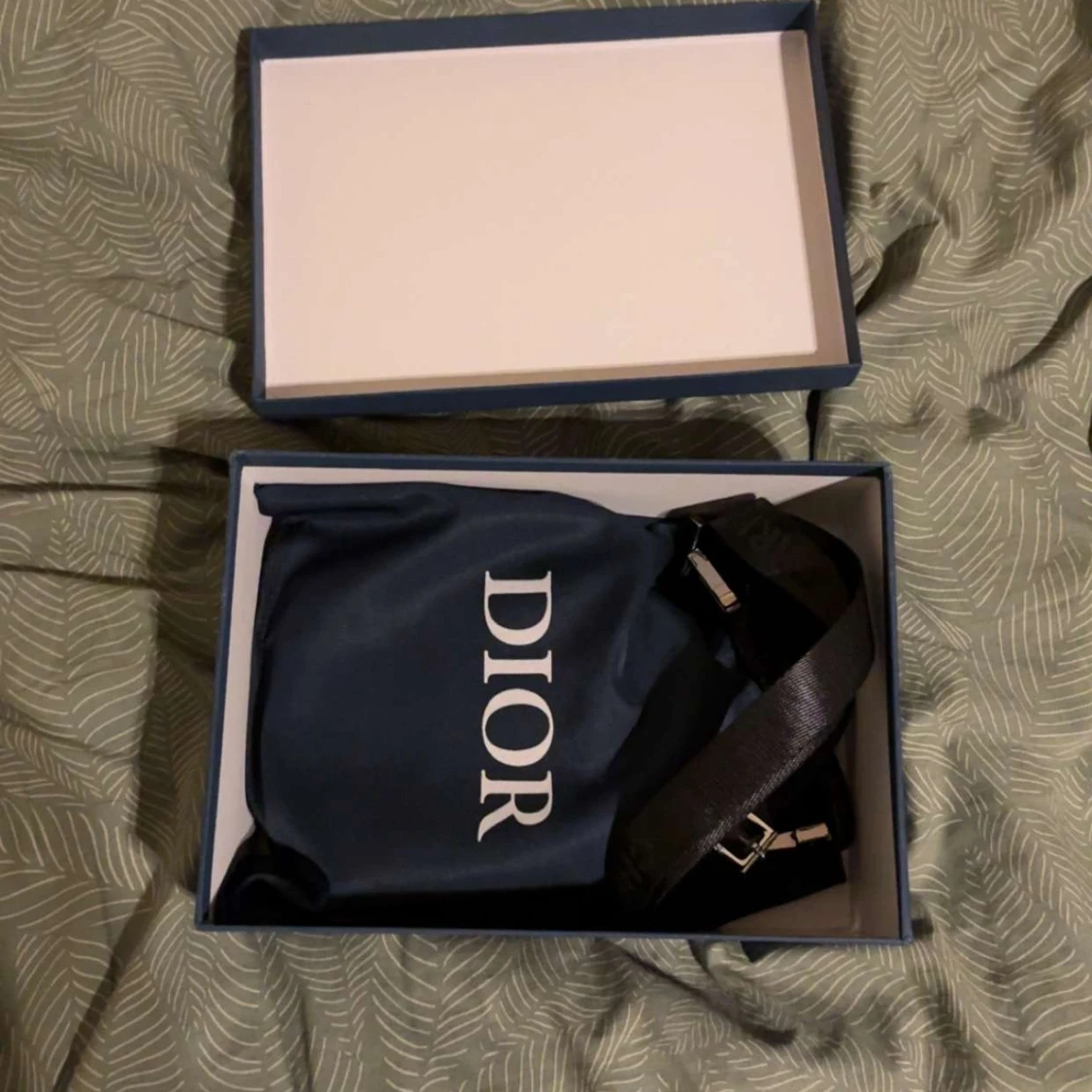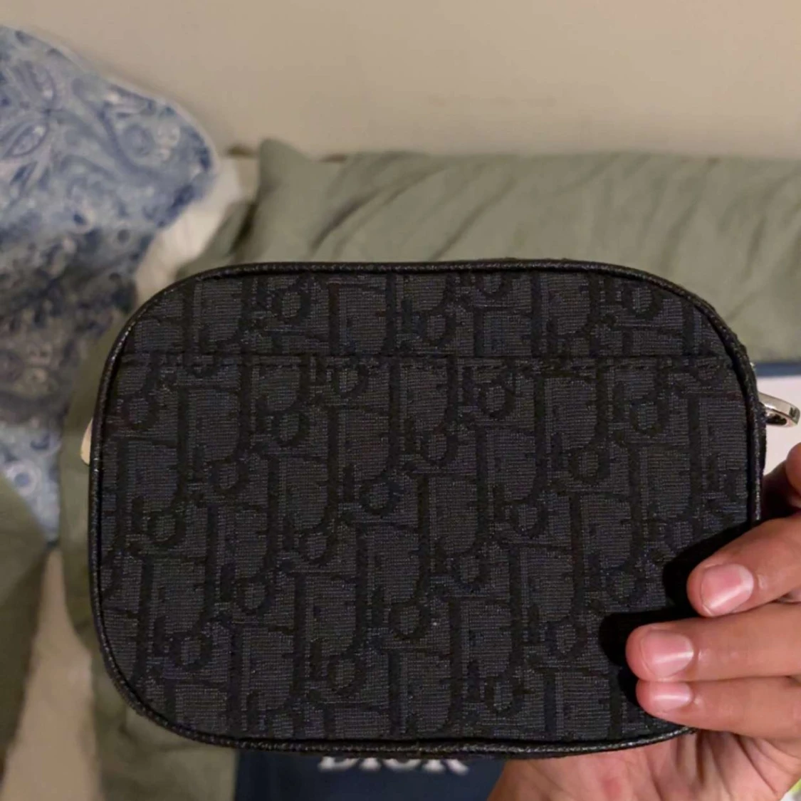 Säljer en svart axelväska från Dior med klassiskt monogrammönster och silverfärgade detaljer. Väskan har en dragkedja framtill, justerbar axelrem och snygga läderdetaljer. Kommer med originalbox och dustbag. Perfekt för dig som vill ha en lyxig och stilren accessoar.