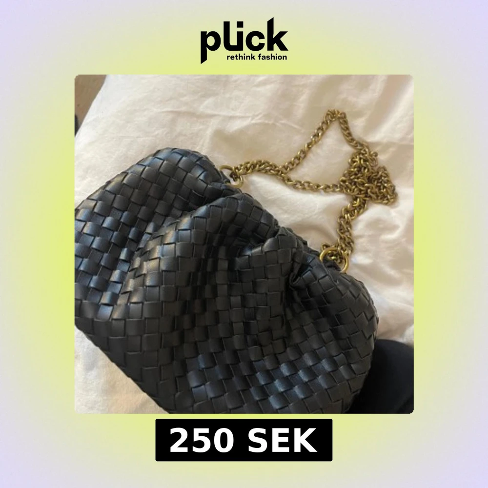 Svart flätad axelväska med kedja