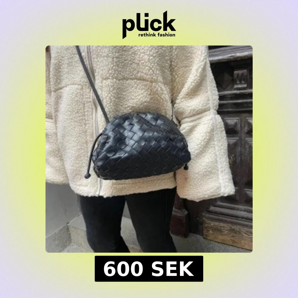 Snygg svart axelväska med flätat mönster och justerbar axelrem. Perfekt för att ge en stilren touch till din outfit. Väskan är kompakt men rymmer det viktigaste du behöver ha med dig.