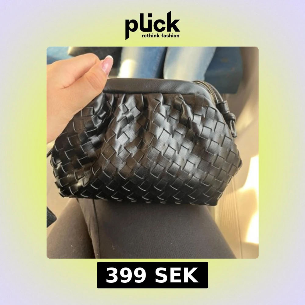Snygg svart dumplingbag med flätat mönster. Väskan är köpt på en marknad i Thailand så vet inte vilket märke det är. Den är använd 1-2 gånger, inga skador eller defekter är synliga på väskan! 🩷