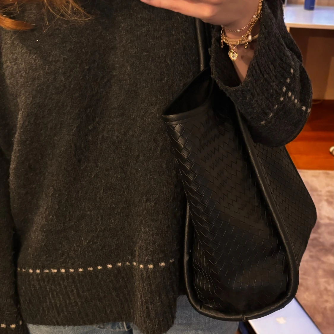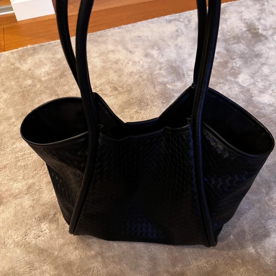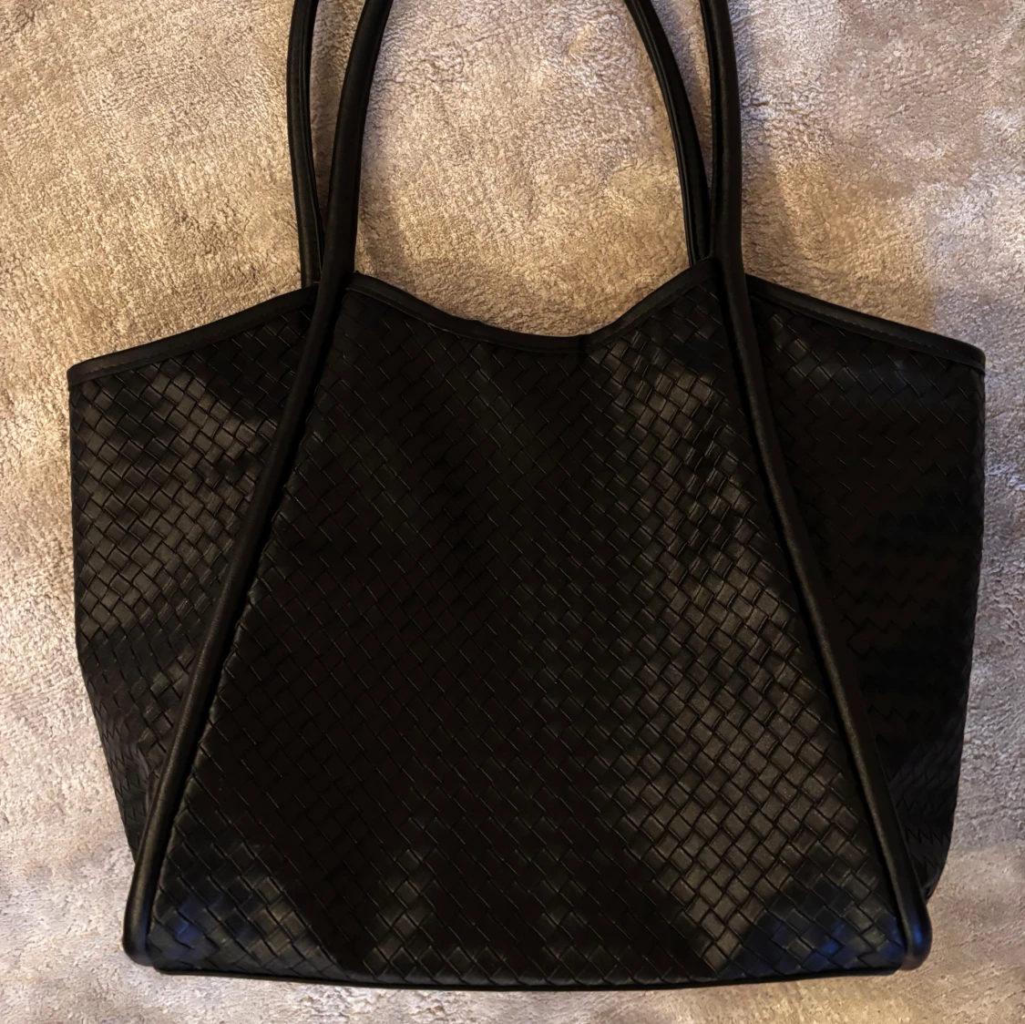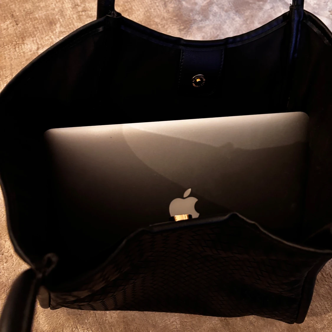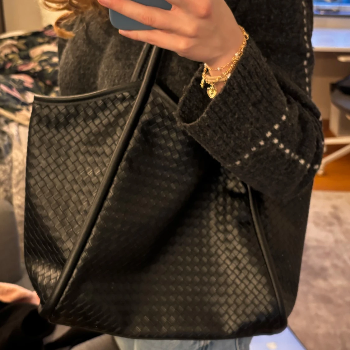 Jättesnygg stor svart flätad väska från ASOS. Perfekt till skolan för att få med allt du behöver. Den får plats med dator, böcker, ja allt! Bild visas för referens!
