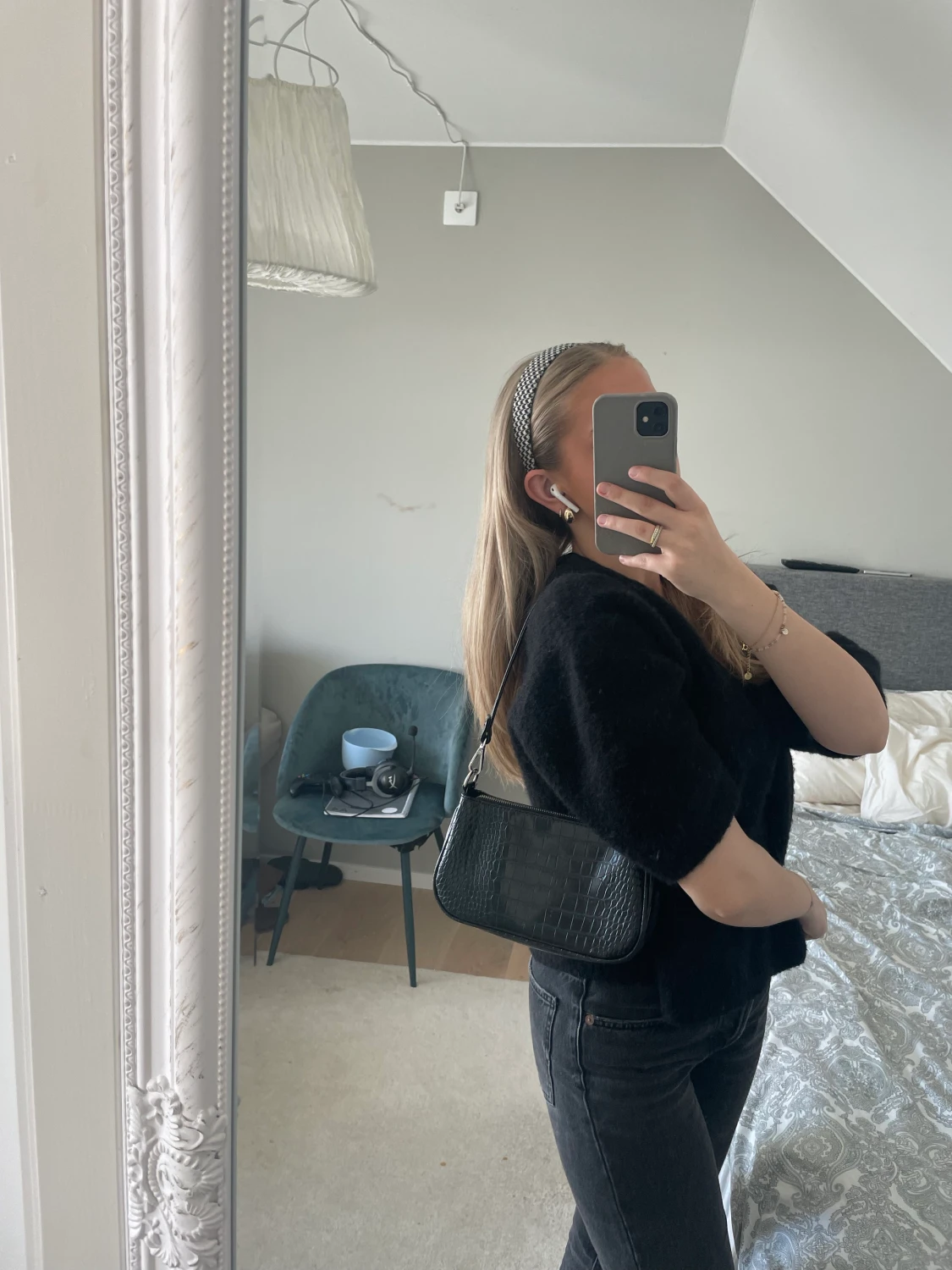 Liten svart axelremsväska i svart. En väska som passar till allt och som är rymlig💕
