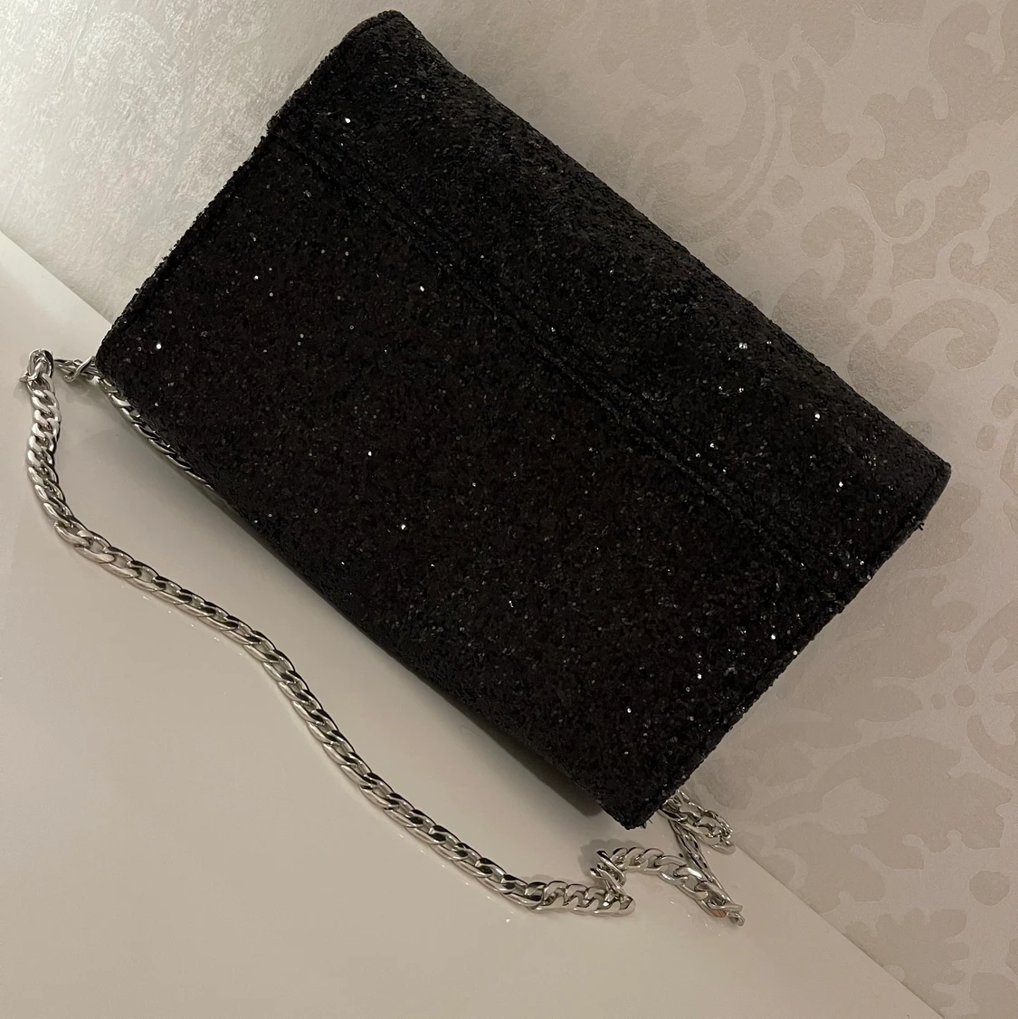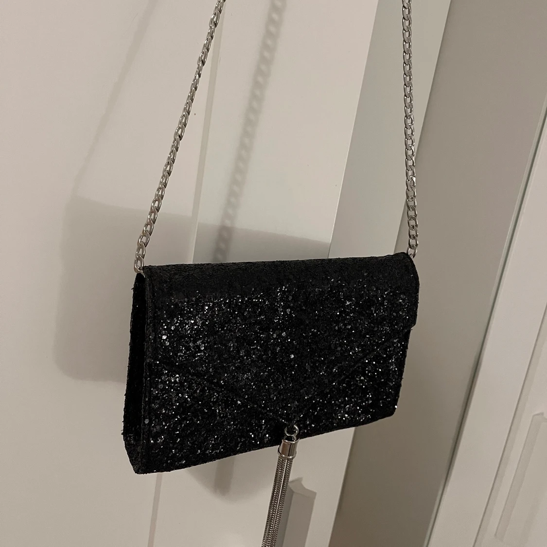 Helt oanvänd snygg glittrig väska från Gina Tricot, med en fin tassel detalj. Längd: 20 cm. Höjd: ca 13cm. Köparen står för frakten ❤️