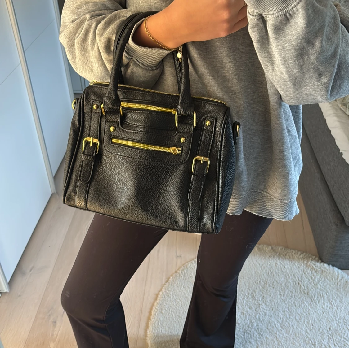 Svart handväska med gulddetaljer. Knappt använd❤️