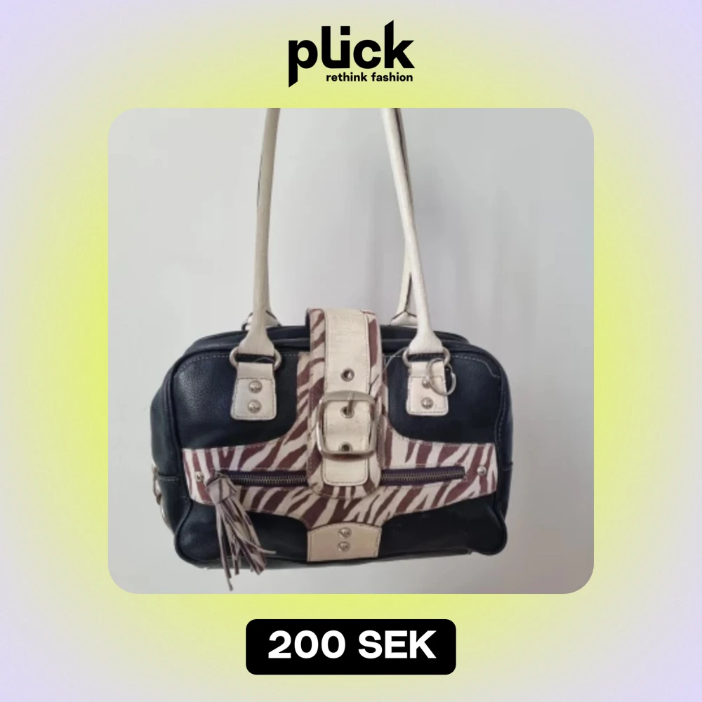 Svart handväska med zebra mönsteriga detaljer. Medel skick.