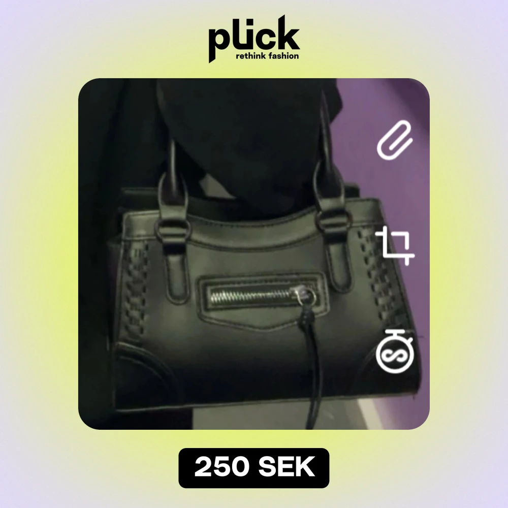 Snygg svart handväska i skinn med handtag man antingen kan hålla i eller ha på armen. Köpt på Gina Tricot för ca 400, jättebra skick