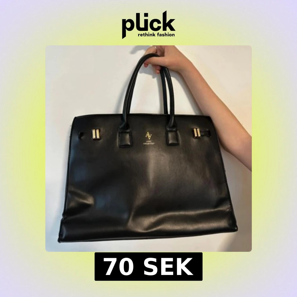 Elegant svart handväska från AV Collection i skinn. Väskan har två handtag och stilrena detaljer i guld. Perfekt för en chic och sofistikerad look.