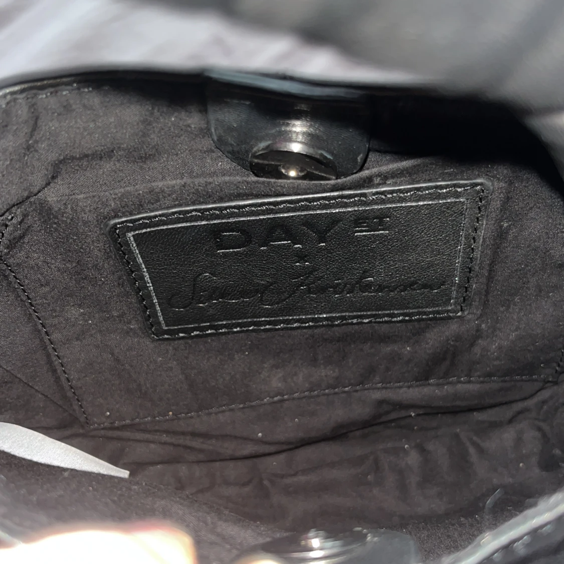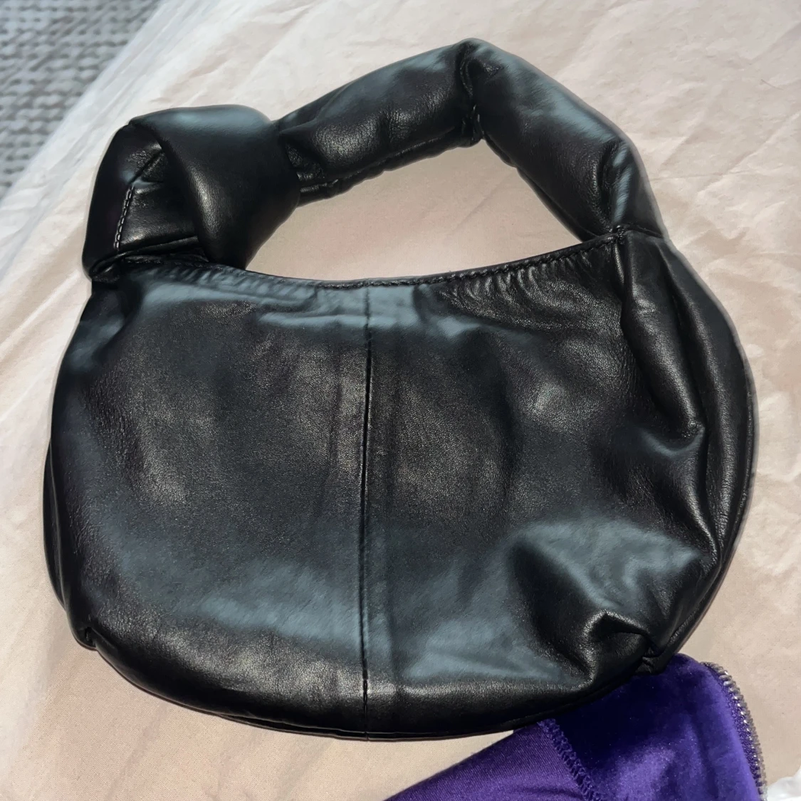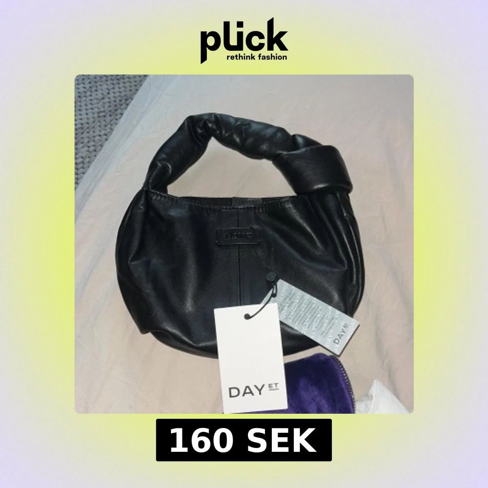 Helt ny!Cool svart handväska i mjukt skinn från DAY ET x Liva Andreasen. Väskan har en rundad form och ett vadderat handtag som ger en trendig look. Perfekt storlek för det viktigaste och stängs med magnetknapp. Enkel och stilren design med diskret logga framtill.