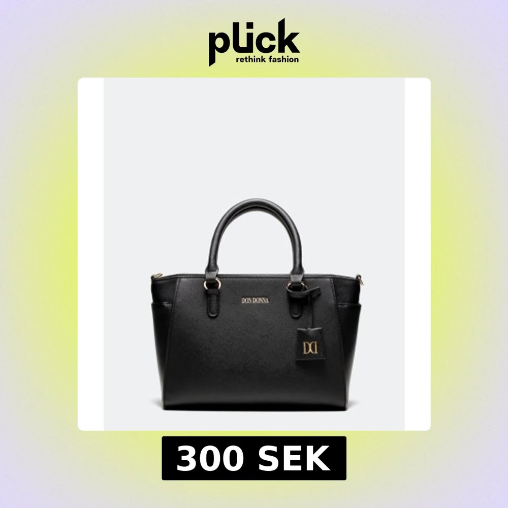 Elegant svart handväska från Don Donna i syntetmaterial. Väskan har både handtag och en avtagbar axelrem för flexibilitet. Den är stilren med guldfärgade detaljer och en praktisk dragkedja. Perfekt för att bära dina nödvändigheter med stil. Nypris 499kr💕