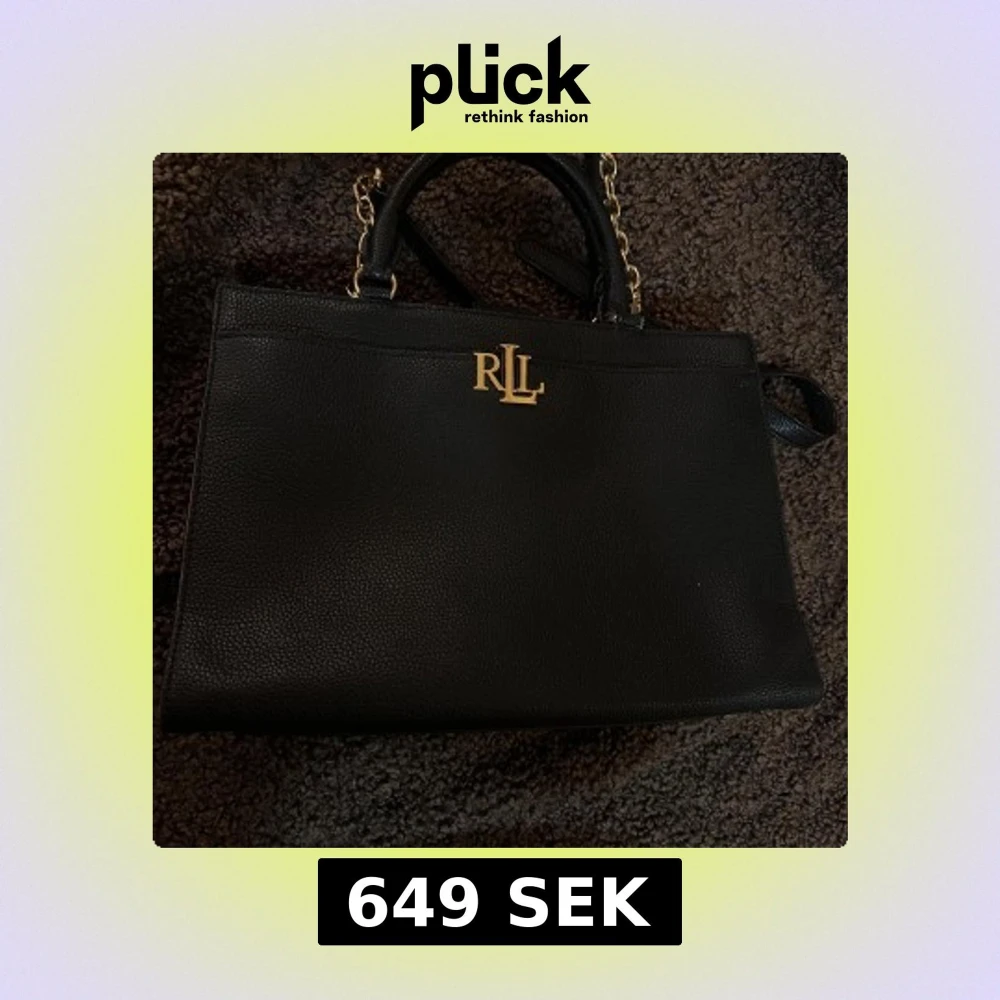 Snygg svart handväska i skinn från Lauren Ralph Lauren ÄKTA med guldfärgade detaljer och kedja. Stilren och fyrkantig form med RLL-logga framtill. Väskan har praktiska handtag och dragkedja upptill för säker förvaring av dina grejer.