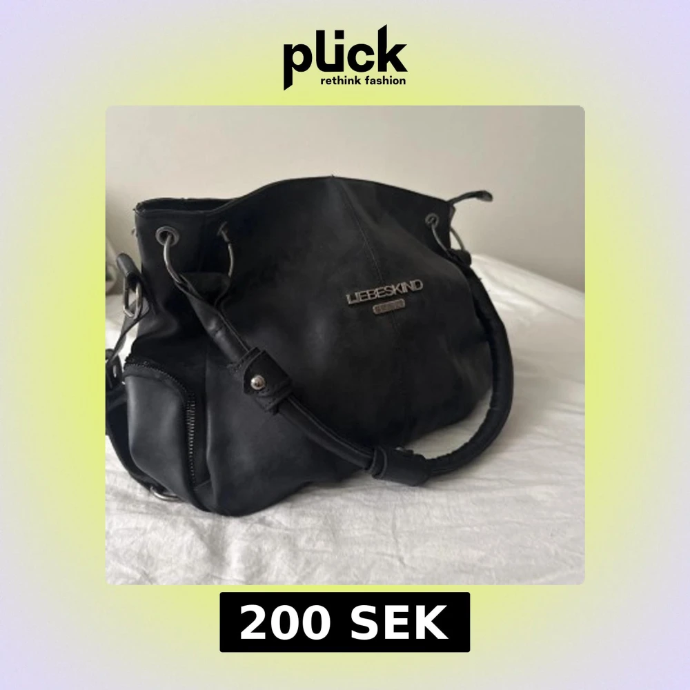 Säljer en svart handväska från Liebeskind med silverfärgade metalldetaljer och dragkedja på sidan. Väskan har rundade former och breda handtag, perfekt för dig som vill ha en stilren och rymlig accessoar.
