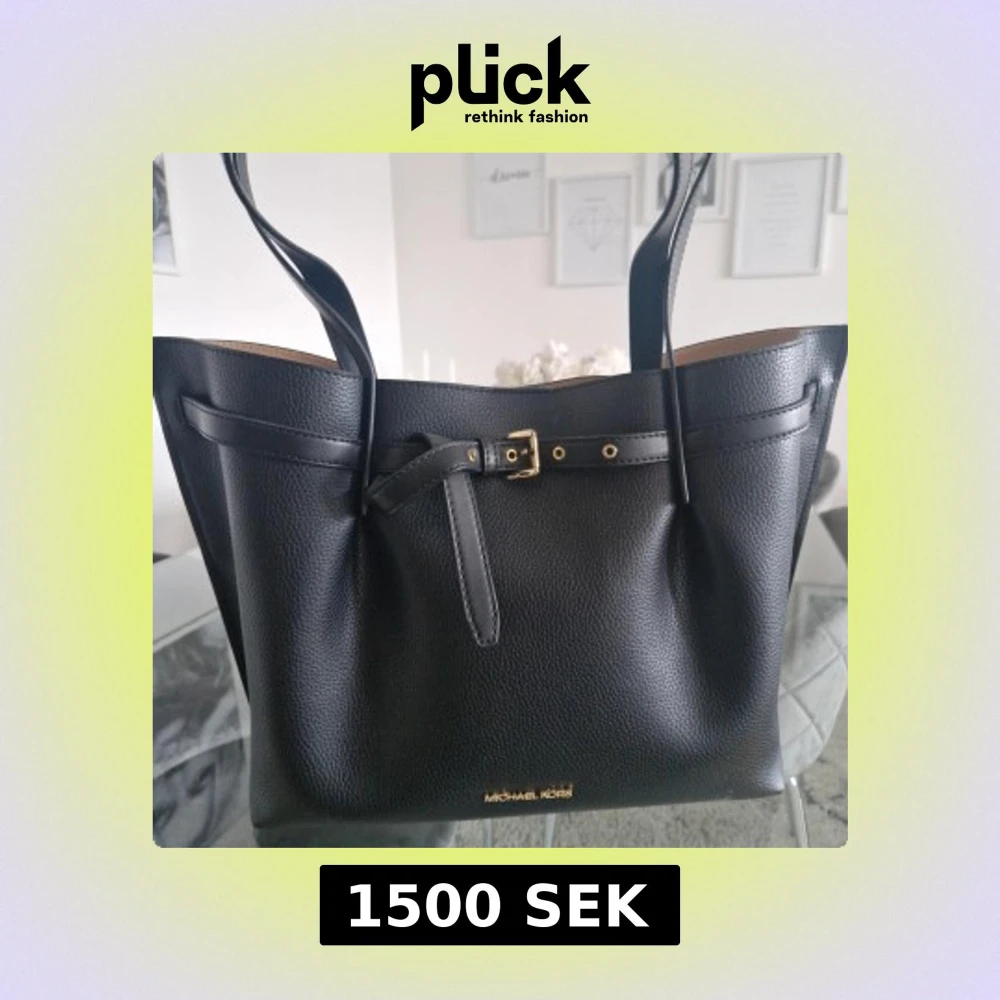 Stilren svart handväska från Michael Kors i äkta skinn. Väskan har guldiga detaljer, bälte med spänne framtill och innerfack med dragkedja. Perfekt för dig som vill ha en rymlig och klassisk accessoar. Nypris: 4400kr