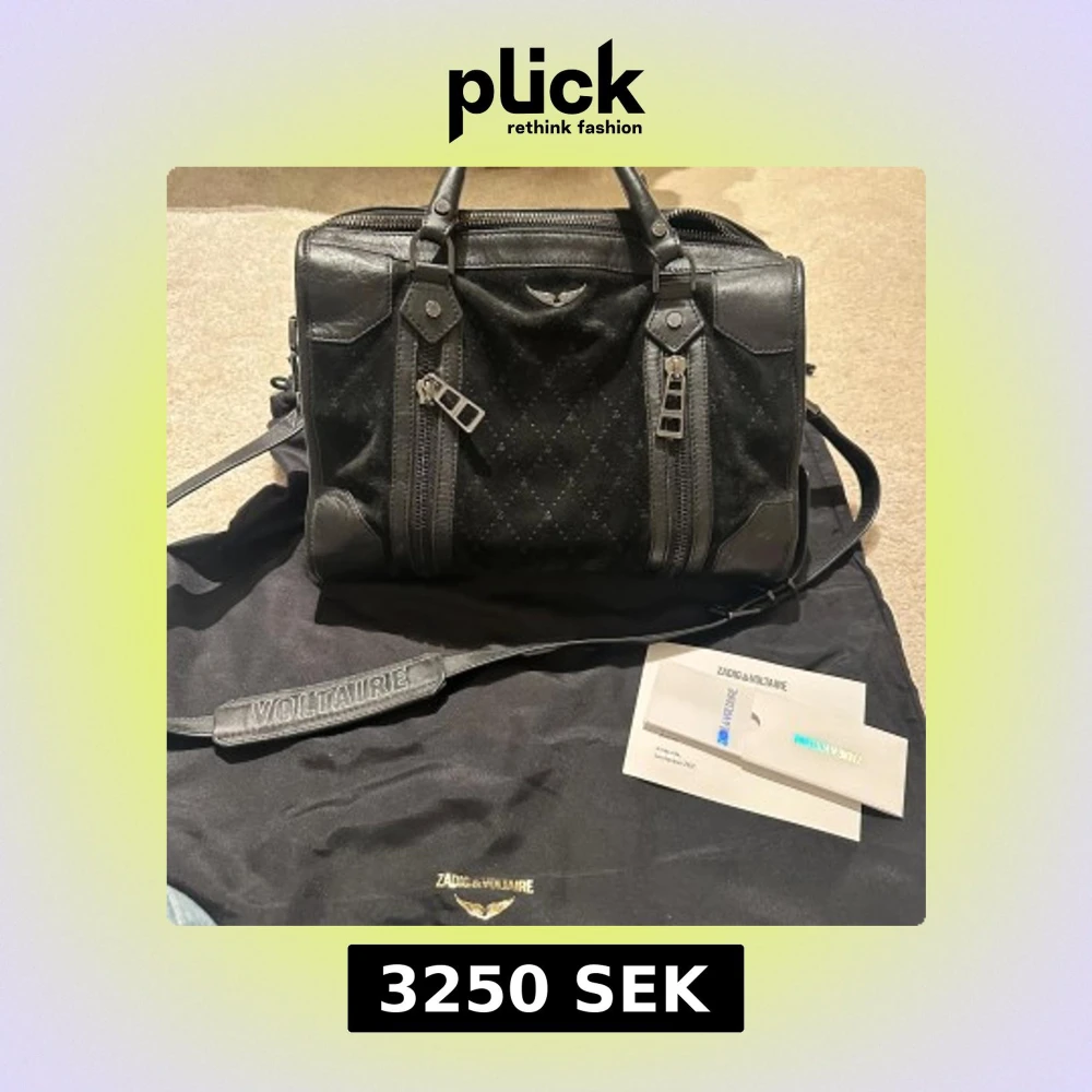 Snygg svart handväska från Zadig & Voltaire med subtilt mönster och detaljer i skinn. Väskan har dubbla handtag och en avtagbar axelrem med logotyp. Inköpt för ca 5500kr 2022, väskan är använd men i bra skick!☺️