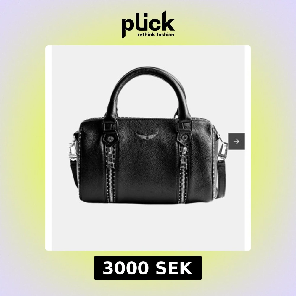 Snygg svart handväska i skinn från Zadig & Voltaire med coola dragkedjedetaljer och ett stilrent emblem framtill. Perfekt för att ge din outfit en edgy touch. Väskan har både handtag och en avtagbar axelrem för flexibilitet. Nypris 5000 men säljer för 3000kr.