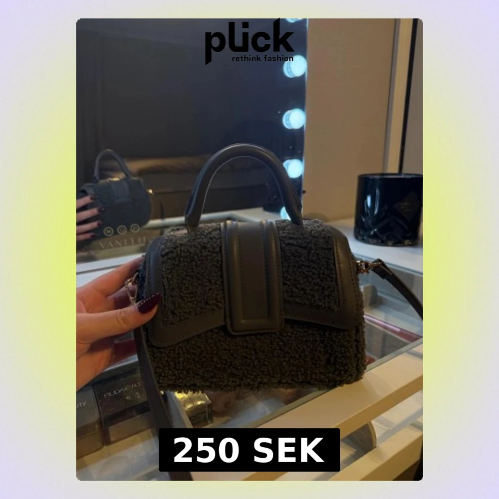 Snygg svart handväska från H&M med mjuk pälsstruktur och detaljer i skinnimitation. Väskan har ett stilrent handtag och avtagbar axelrem, perfekt för dig som gillar trendiga accessoarer. Insidan är fodrad och har en praktisk ficka.