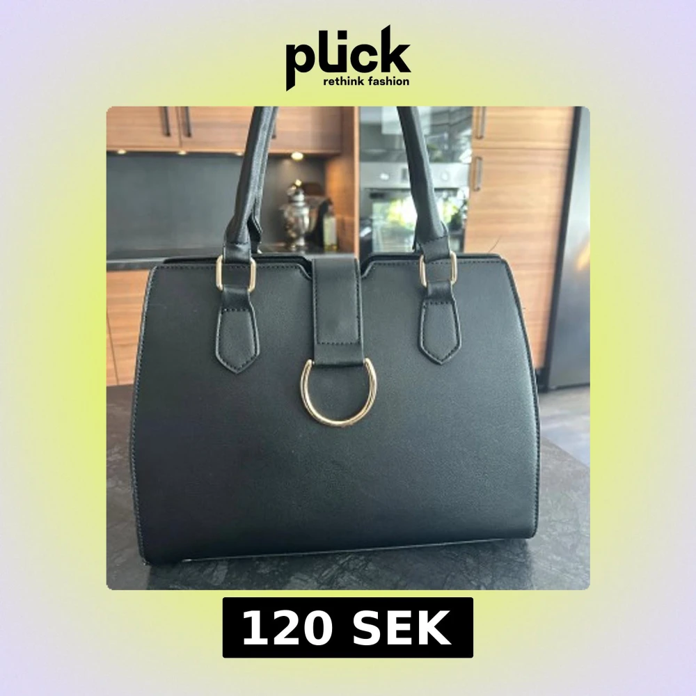 Stilren svart handväska i skinnimitation med två rejäla handtag och snygga guldfärgade metalldetaljer. Väskan har en klassisk, boxig form och stängs med dragkedja. Perfekt för dig som gillar minimalistisk och elegant design.