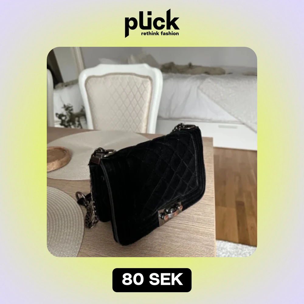 Svart handväska i tygmaterial, super fin men även använd så lite risig vid stängningen. Inget som märks dock!