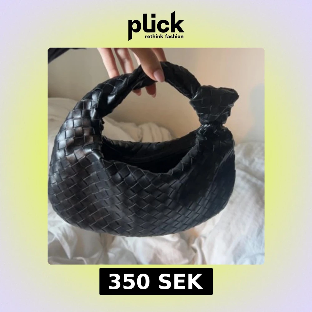 Snygg svart handväska med flätat mönster, bottega liknande väska.