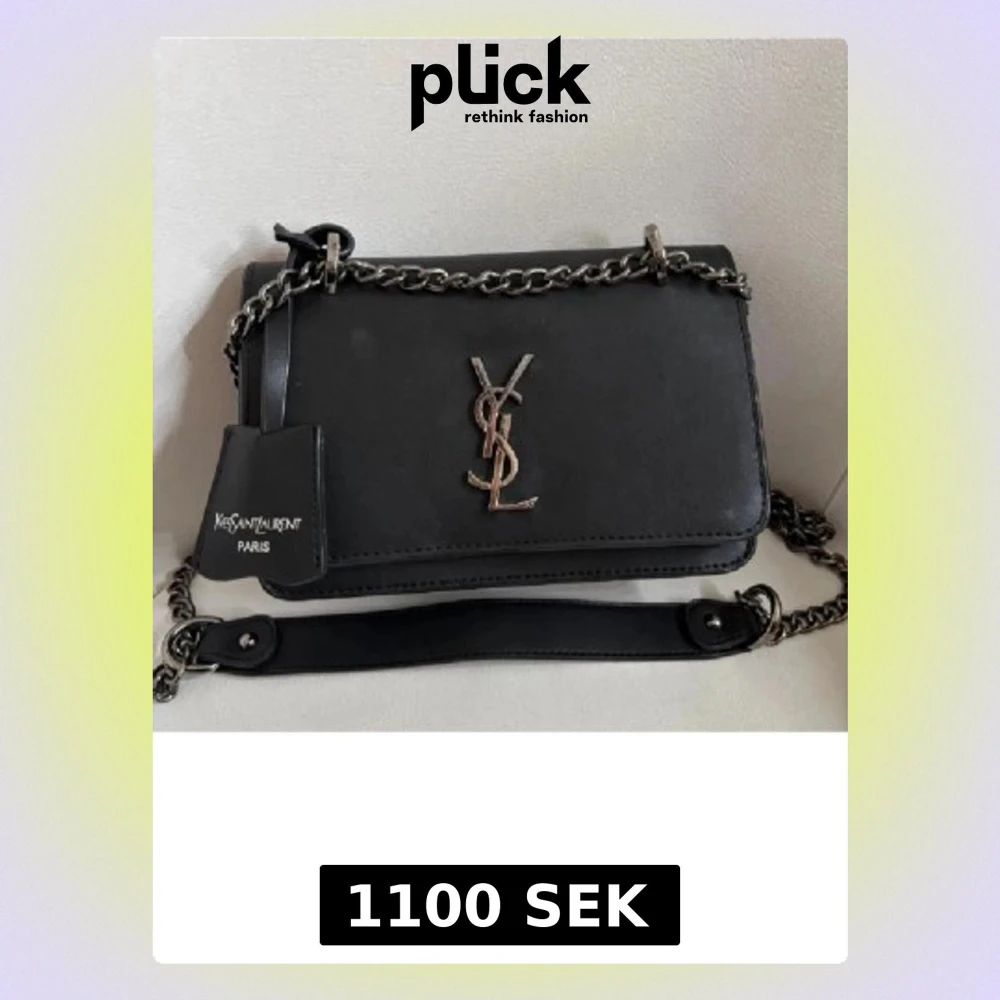 Säljer en stilren svart handväska med silverfärgad kedja och ikonisk YSL-logga framtill. Väskan är tillverkad i skinn och har vinrött innerfoder med flera fack för smart organisering. Perfekt storlek för det viktigaste och en snygg detalj till din outfit.