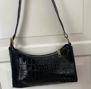 Helt ny svart hand väska i krokodil mönster med guld detaljer. Du får plats med mycket i den här väskan. Ny inköpt av annan Plickare. Finns inga Defekter.
