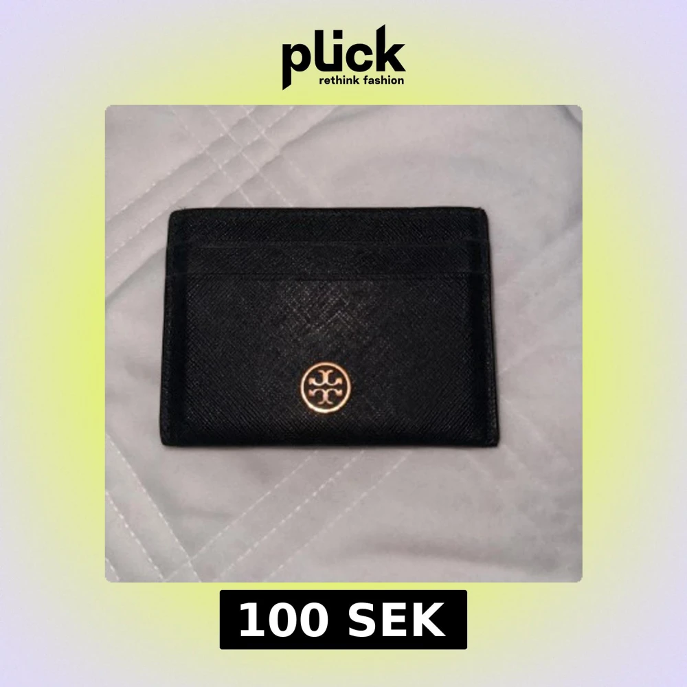 Säljer ett stilrent svart kortfodral från Tory Burch med guldfärgad logga framtill. Gjord i strukturerat skinn och har flera fack för kort. Perfekt att ha i fickan eller väskan.