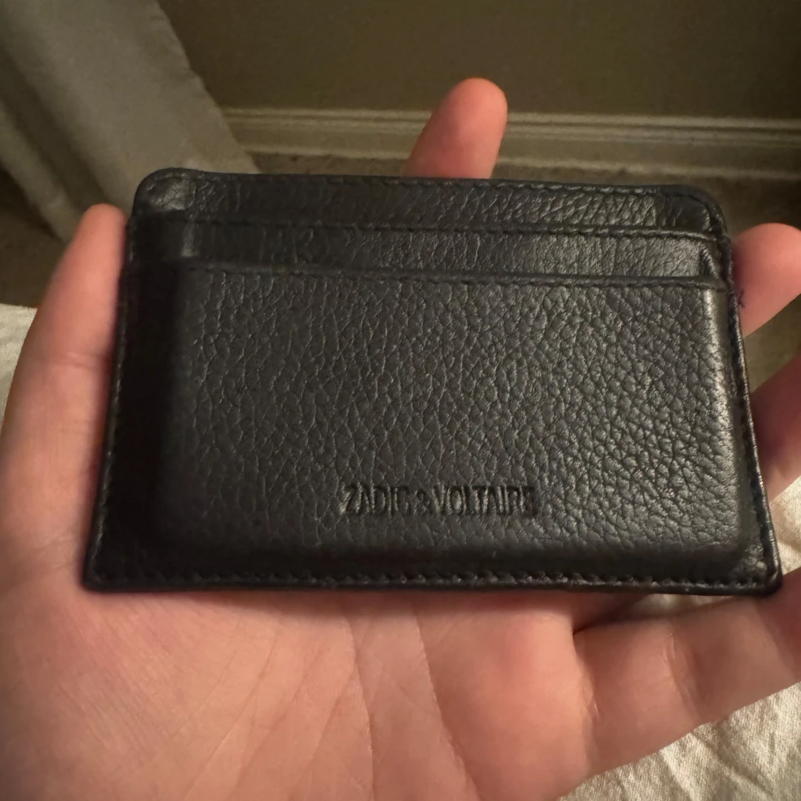 Stilrent svart kortfodral från Zadig & Voltaire i äkta skinn. Framsidan har en snygg silverfärgad vingdetalj och baksidan har flera kortfack med präglad logga. Perfekt för dig som vill ha ett smidigt och trendigt sätt att bära dina kort.