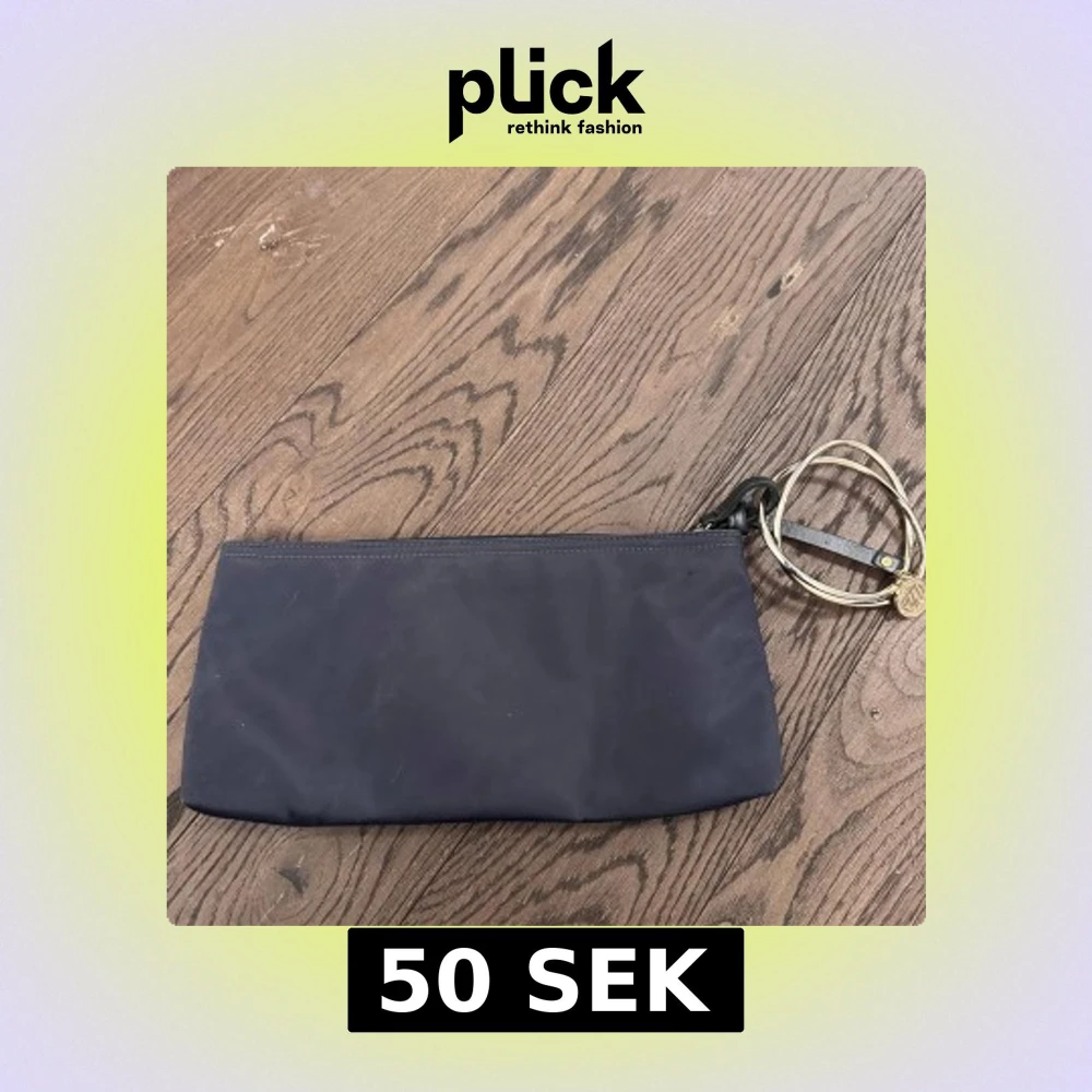 Elegant svart kuvertväska från DKNY med en stilren design. Väskan har en avtagbar rem i guld och en diskret logotypdetalj. Perfekt för att bära det nödvändigaste med stil.