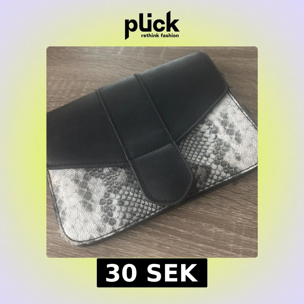 Stilren svart kuvertväska med lock och detaljer i ormmönstrad syntet. Väskan har flera fack inuti, inklusive ett med dragkedja. Perfekt för dig som vill ha en edgy accessoar med plats för det viktigaste.